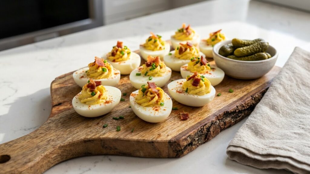 I’ve come to enjoy playing with the texture of the filling by folding in diced onion, celery, and even a touch of relish, all bound together with creamy mayonnaise, extra mayonnaise, a little mustard, and the richness that comes from mashing yolks after hard-boiling, peeling, and slicing eggs, then refilling egg white halves with a mixture that’s lightly seasoned with salt, pepper, and a gentle sprinkle of paprika, along with small additions of fresh herbs, leaving the top beautifully garnished with a warm color and a bright flavor that reminds me why this recipe has stayed a go-to at all our parties.